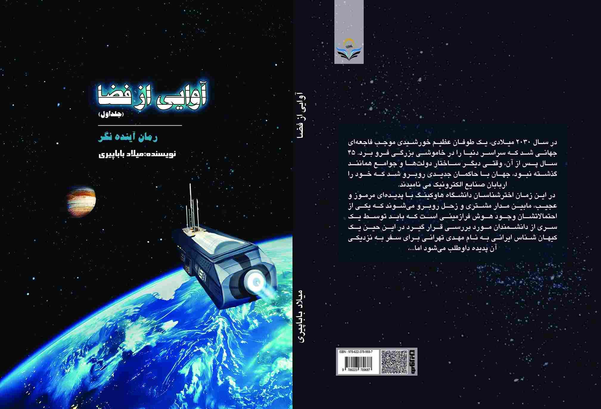 کتاب «آوایی از فضا (جلد اول)» اثری ماجراجویانه و تفکربرانگیز از میلاد باباپیری است؛ نویسندهای که در این اثر، با نگاهی آمیخته از فلسفه، جامعه شناسی، اقتصاد، کیهان شناسی … به پیش بینی آینده روی می آورد. این جلد نخست از مجموعه دو جلدی است که جهان آینده و سرنوشت انسان را آنطور که احتمالش می رود ترسیم می کند نه آنطورکه دلش می خواهد.
