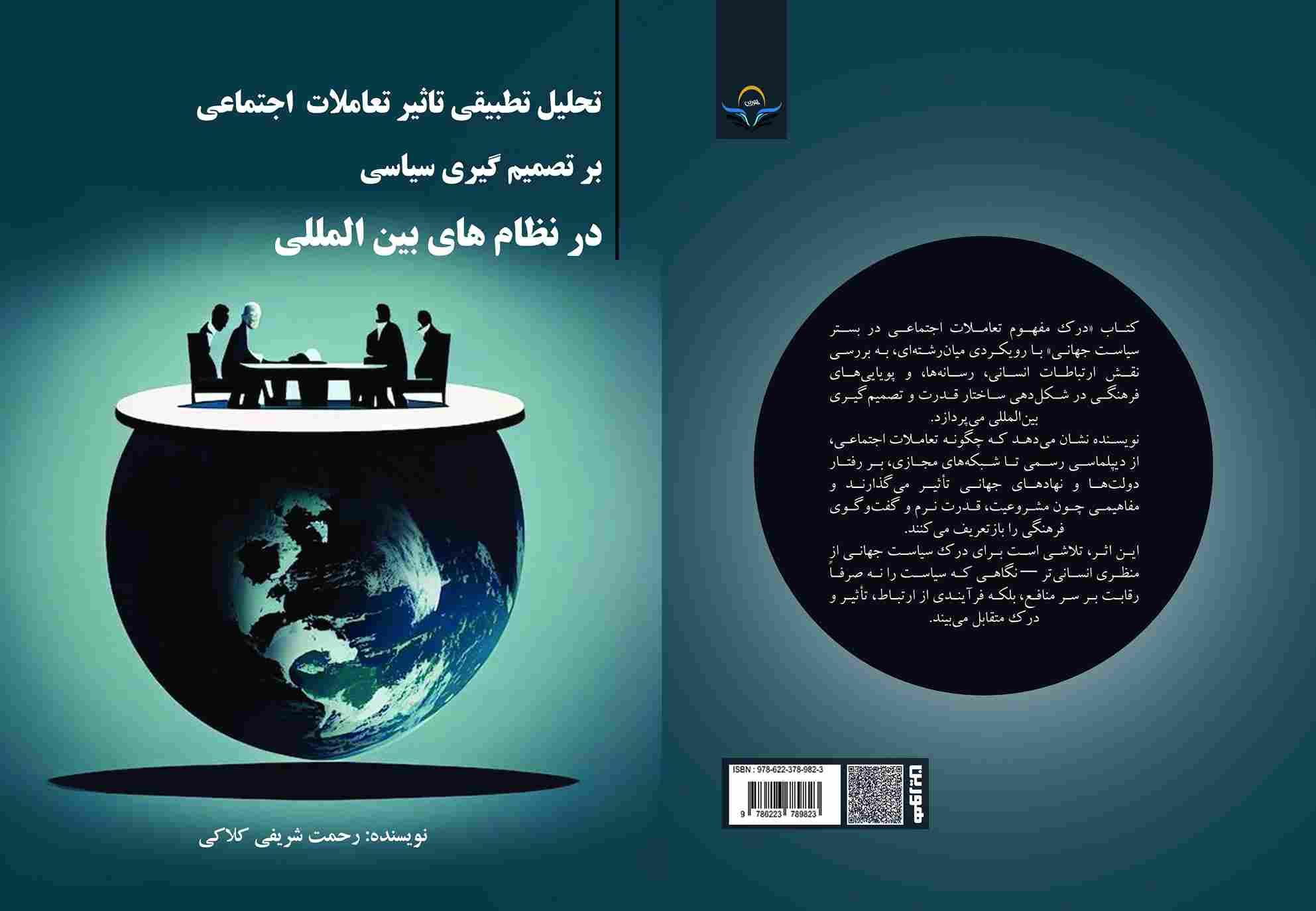 کتاب «تحلیل تطبیقی تأثیر تعاملات اجتماعی بر تصمیمگیری سیاسی در نظامهای بینالمللی» نوشتهی رحمت شریفی کلاکی، با شابک 978-622-378-982-3 و در ۸۵ صفحه از سوی انتشارات هورین منتشر شده است. این اثر پژوهشی یکی از آثار تحلیلی و میانرشتهای در حوزه علوم سیاسی و روابط بینالملل است که با نگاهی جامع به پیوند میان ساختارهای اجتماعی، ارتباطات انسانی و فرآیندهای تصمیمگیری سیاسی میپردازد. هدف اصلی نویسنده، بررسی تطبیقی این است که چگونه شبکههای اجتماعی، ارتباطات فرهنگی و نهادهای مدنی در نظامهای مختلف سیاسی بر فرآیند تصمیمسازی در سطوح ملی و بینالمللی تأثیر میگذارند.