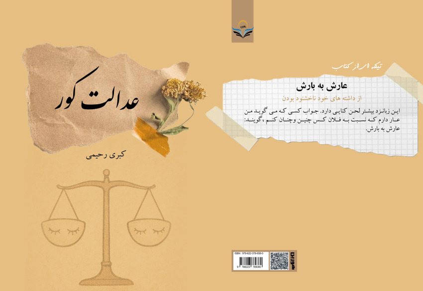کتاب «عدالت کور» نوشتهی کبری رحیمی با شابک 978-622-378-938-0 در 111 صفحه توسط انتشارات هورین منتشر شده است. این اثر در ادامه مجموعهی ضربالمثلها و روایتهای عامیانهای است که نویسنده با قلمی دلنشین و روایتی مردمی گردآوری کرده است. همانگونه که از عنوان کتاب برمیآید، مفاهیم عمیق اجتماعی و فرهنگی در قالب مثلها و حکایتهای عامیانه بازتاب داده شدهاند تا خواننده را به تفکر دربارهی رفتارها، قضاوتها و باورهای جمعی وادارد.